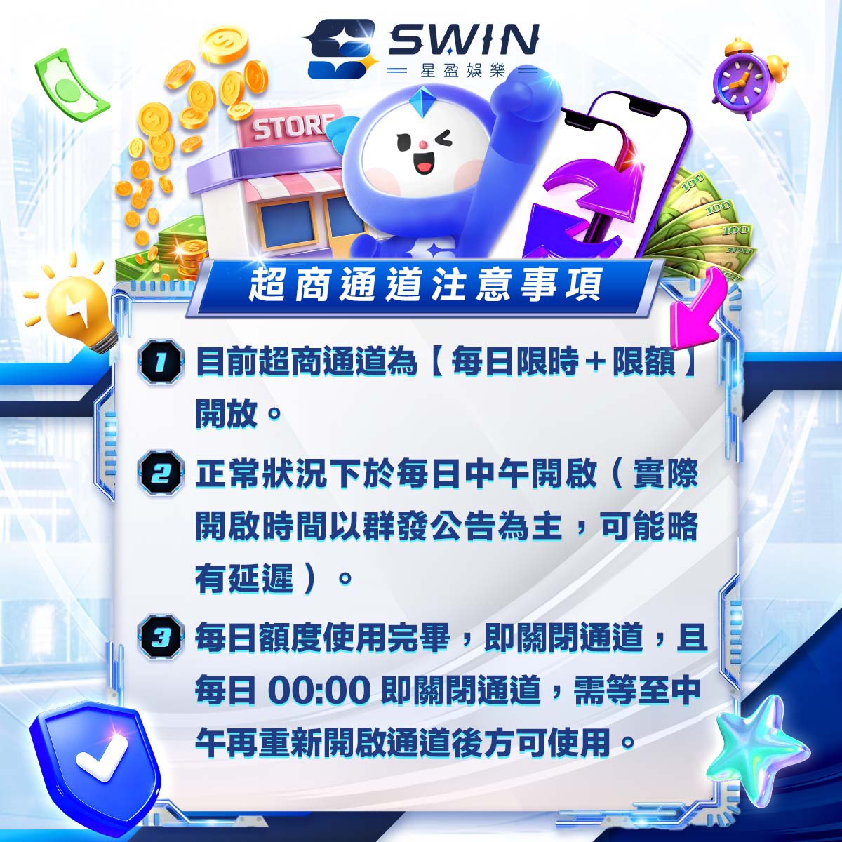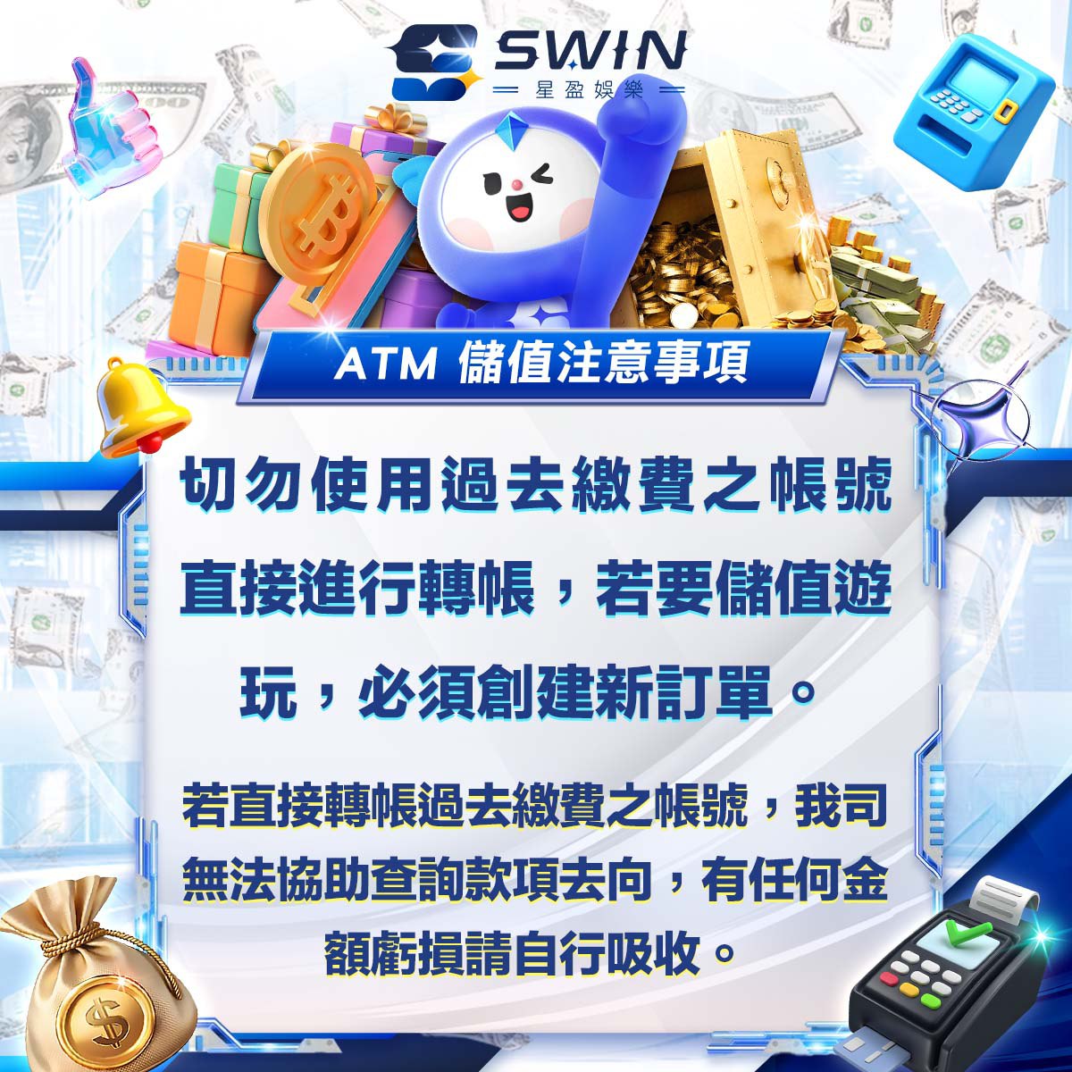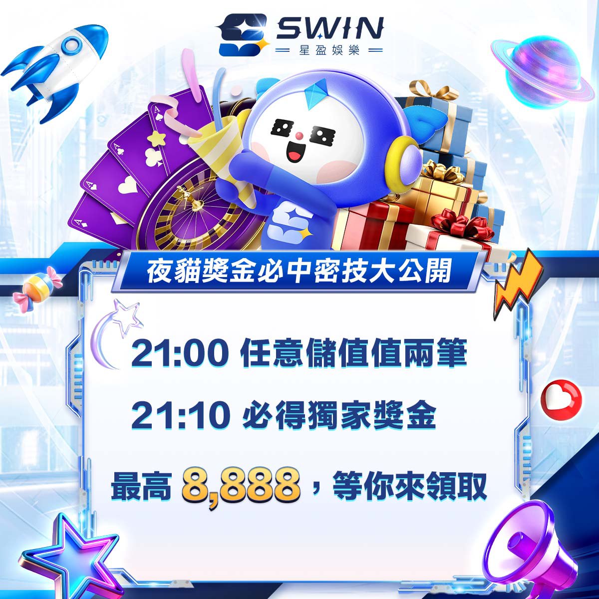 【優惠公告】SW00 - 完成實名認證+銀行帳戶綁定,聯繫客服,即可領取專屬迎新好禮 【優惠公告】 SW01 - 首次儲值滿100享101%回饋,最高贈送 1,028 【優惠公告】SW05 - 登入禮補給 每日 / 每週 / 每月登入,不定期發送獨家獎金 【優惠公告】SW06 - 邀請獎金 星盈會員即刻邀請好友,完成任務最高領取 888 獎金 【優惠公告】SW03 - 當日投注,隔日自動返水【最高1.8%】,天天領、無上限 ! 【優惠公告】SW02 - 立即啟用【尊享禮遇】,體驗專屬升級福利,週週再享VIP禮金 【優惠公告】SW07 - 指定ATM儲值,享1.5%回饋,無上限回饋越玩越多 【優惠公告】SW04 - 每月【8號・18號・28號】千萬獎金等你領,最高獎勵可達 108,888